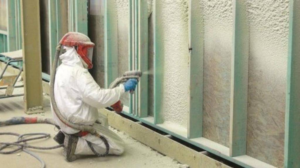 Этот материал отличается особенным монтажом. В ходе работы мастер применяет специальный распылитель, который подает вспененный материал под давлением на стены, перекрытия и наклонные поверхности. Жидкий пенополиуретан, смешиваясь с воздухом, превращается в пену. Когда она высохнет, получается монолитный слой, плотно прилегающий к поверхности основания. Под ним не образуется грибок, плесень, не скапливается жидкость.
