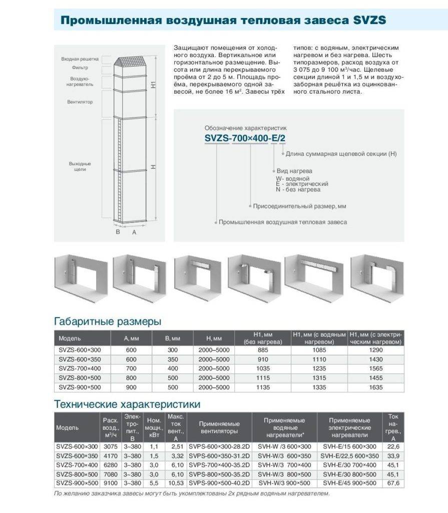 Чаще всего в технической документации на изделие производитель напрямую указывает, под какие максимальные размеры проема разработана конкретная модель. Там же обязательно указывается и производительность системы, обычно в кубометрах в час. Считается, что оптимальным для стандартного дверного проема габаритами 0,8÷1,0 × 2,0÷2,2 м считается прокачка 700 ÷ 900 м³/ч. Однако, если посмотреть на каталоги оборудования, то нередко встречаются завесы и с куда более скромными значениями. Единства взглядов производителей в этом вопросе нет.