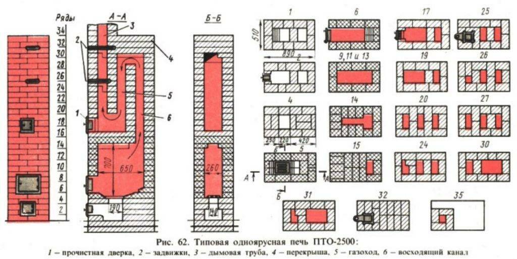Самостоятельное сооружение кирпичной печи должно проводиться с использованием чертежей и порядовок.