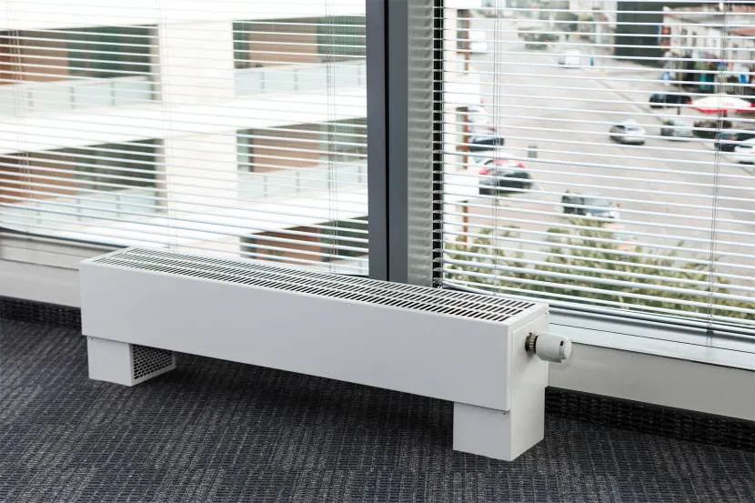 - Компактность. Отопительные конвекторы отличаются сравнительно небольшими размерами, поэтому для их установки не требуется много места. Кроме того, компактность позволяет использовать такие устройства без вреда для интерьера отапливаемого помещения.