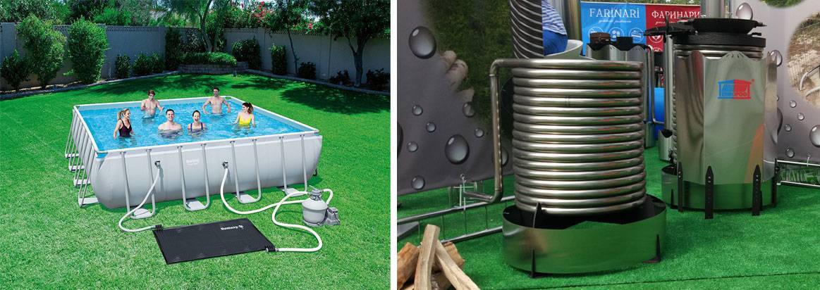 Для дачного пользования единственным выгодным вариантом является подогрев бассейна прибором, сжигающим твердое топливо. На крайний случай отдают предпочтение электрическим моделям.