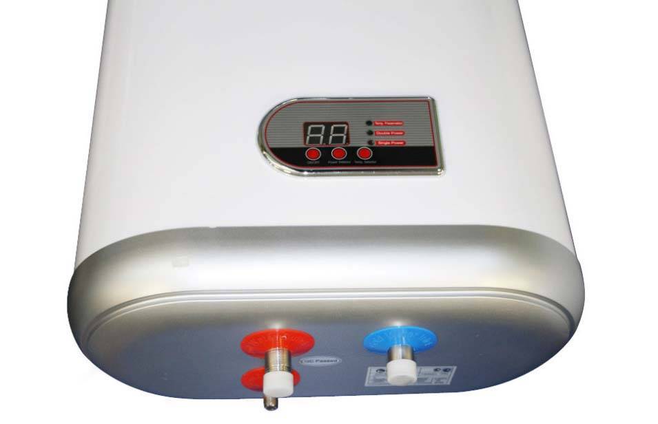 Что же касается объема плоского водонагревателя, то он обычно составляет от 50 до 100 литров – этого вполне достаточно для семьи из трех-четырех человек. Конструктивная особенность плоских накопительных водонагревателей – наличие двух соединенных между собой внутренних баков со своими нагревательными элементами и термостатами. Именно это, а также уникальный материал теплоизоляции, позволили столь радикально изменить геометрию прибора, а заодно и ускорить процесс нагрева воды