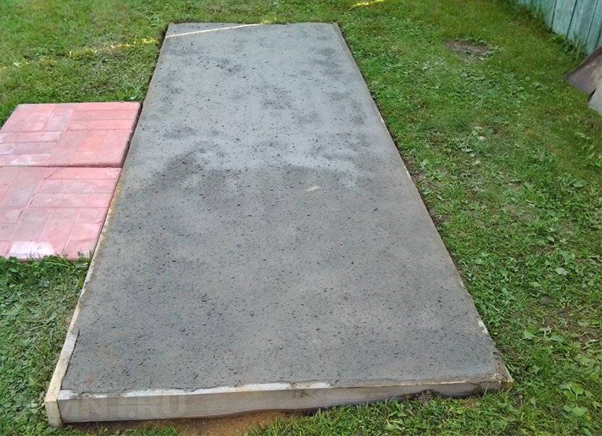 Несмотря на разницу в конфигурации, данные элементы имеют одинаковую форму в виде прямоугольника. Расчет количества бетона выполняется по формуле: V= AxBxC, где A и B – длина и ширина основания, C – его глубина (без песчаной подушки), а V – количество раствора, необходимое для заливки