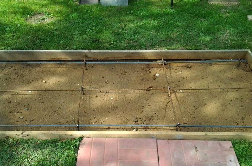- Уложить армирующую сетку и залить второй слой бетона (также на 1/3 высоты).
