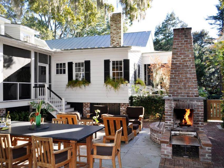 Также следует продумать наличие крыши. Существуют варианты с открытым и закрытым типом жаровни. Во втором случае конструкция печи для шашлыка из кирпича внешне напоминает камин. Преимущества подобного проекта очевидны, поскольку в случае дождя очаг будет защищен от осадков. Чтобы такая конструкция функционировала должным образом, обязательно придется обустроить дымоход.