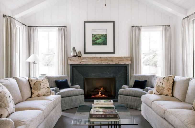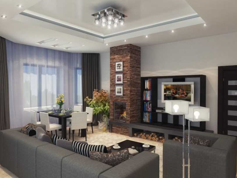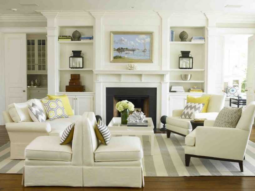 Важное место в оформлении гостиной с камином в квартире занимает правильный выбор цветов и оттенков, которые призваны создать гармоничный ансамбль в помещении. Владельцу узкой и длинной гостиной можно предложить последовательное расположение функциональных зон