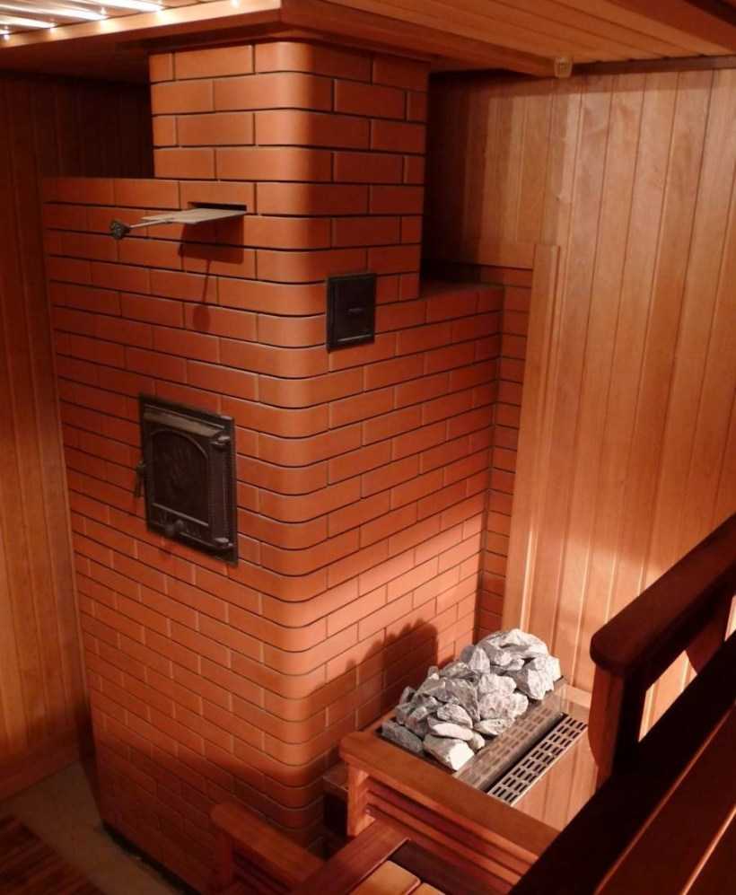 Следовательно, парная – это помещение, в котором не бывает слишком много свободного пространства и всегда присутствует риск прикосновения к стенкам печи. Даже пышущая жаром каменная печь для бани на дровах никогда не станет причиной ожога. Если в парной установлена именно кирпичная печка, то – это уже и не парная, а кабинет релаксации, в котором происходит расслабление всех мышц и вывод шлаков из организма.